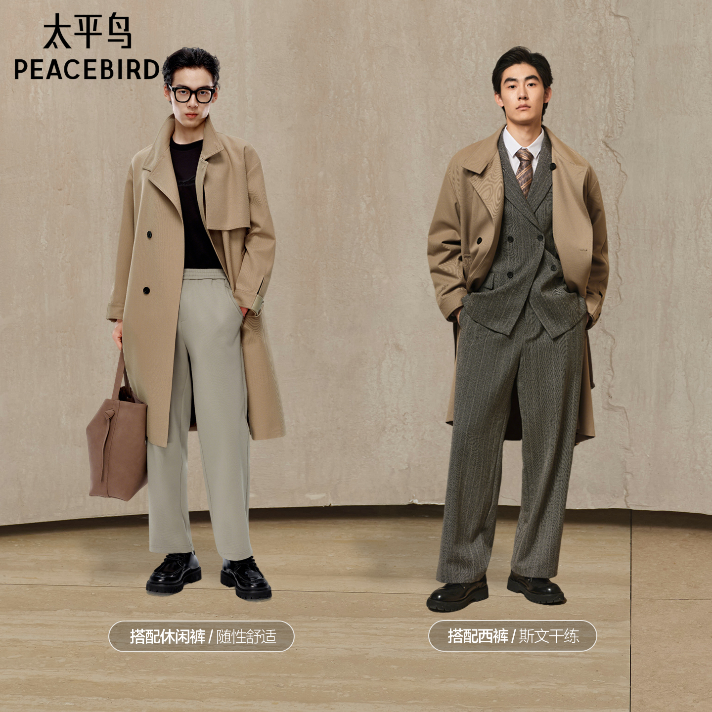 过膝无羊绒呢子风衣外套韩版 毛呢大衣男中长款 宽松落肩 新款 秋冬季