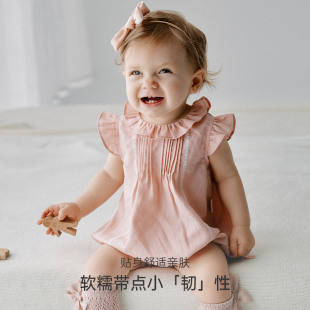 婴儿包屁衣小飞袖 宝宝连体衣天丝亚麻平纹短袖 爬服 Family夏季 Oak