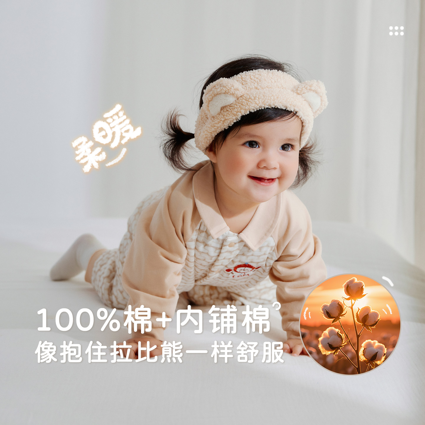 拉比婴儿全开连体衣40g夹棉保暖居家外出长袖 新生儿宝宝哈衣爬服