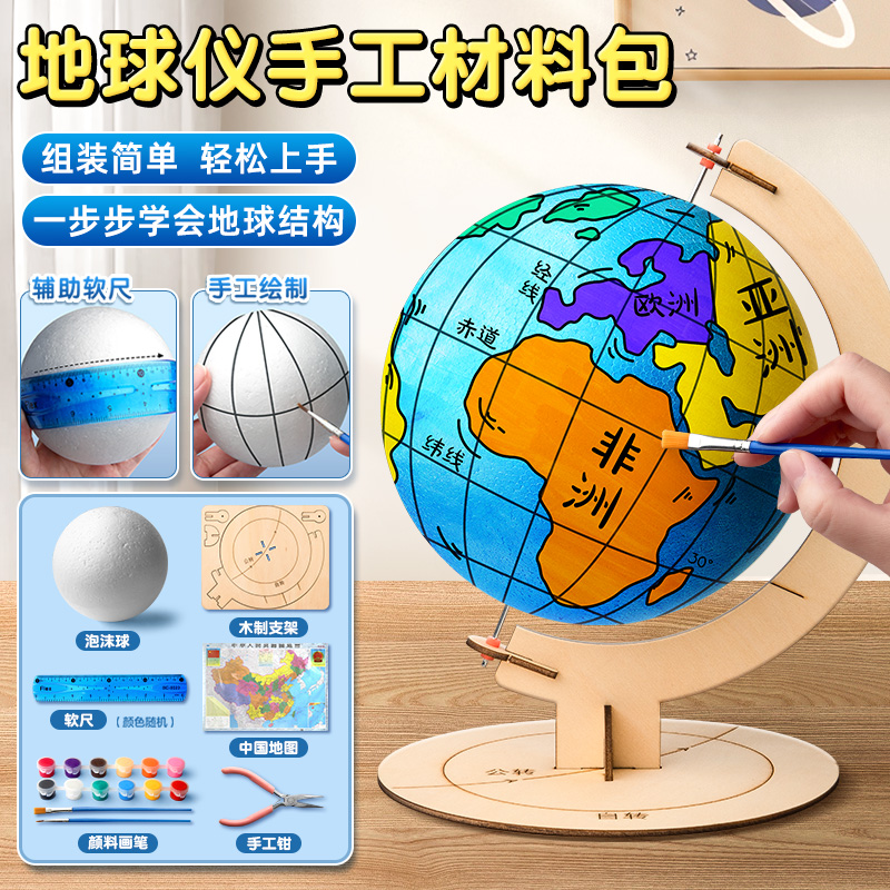 得力2025新款 自制地球仪手工制作材料包diy小学生初中生专用儿童泡沫球成品半成品摆件模型高中生2024年新版