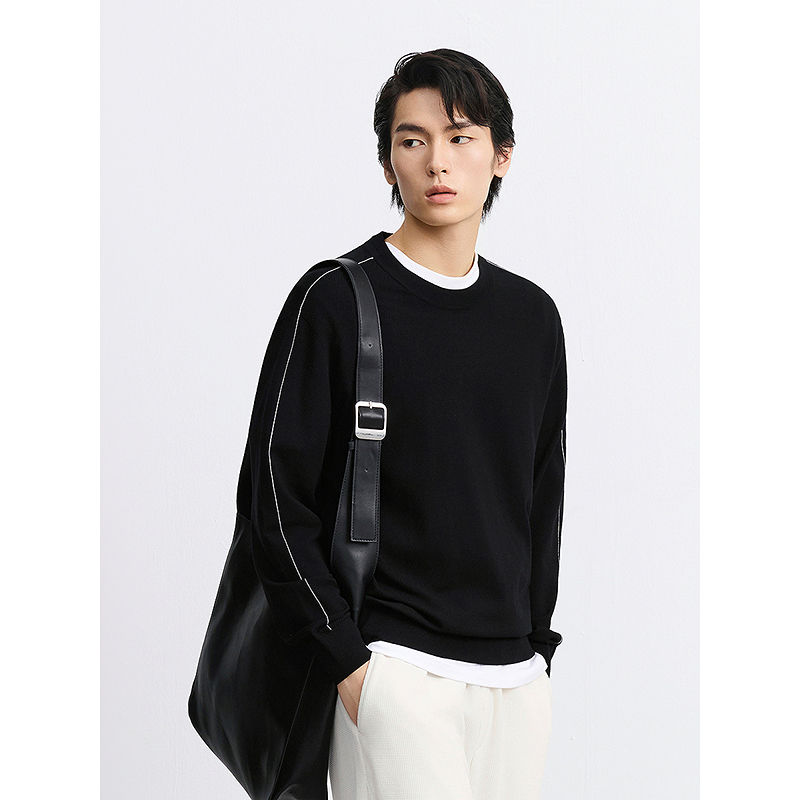 新品 GXG男装 25年秋季 通勤内搭男打底衫 肩膀明线毛衣休闲针织衫
