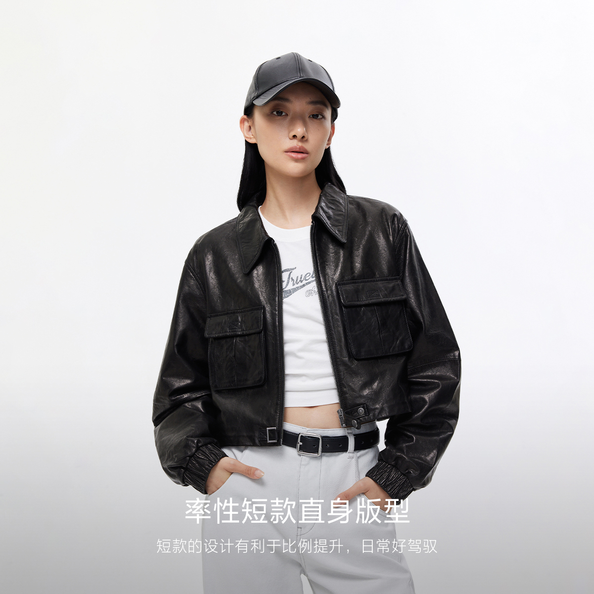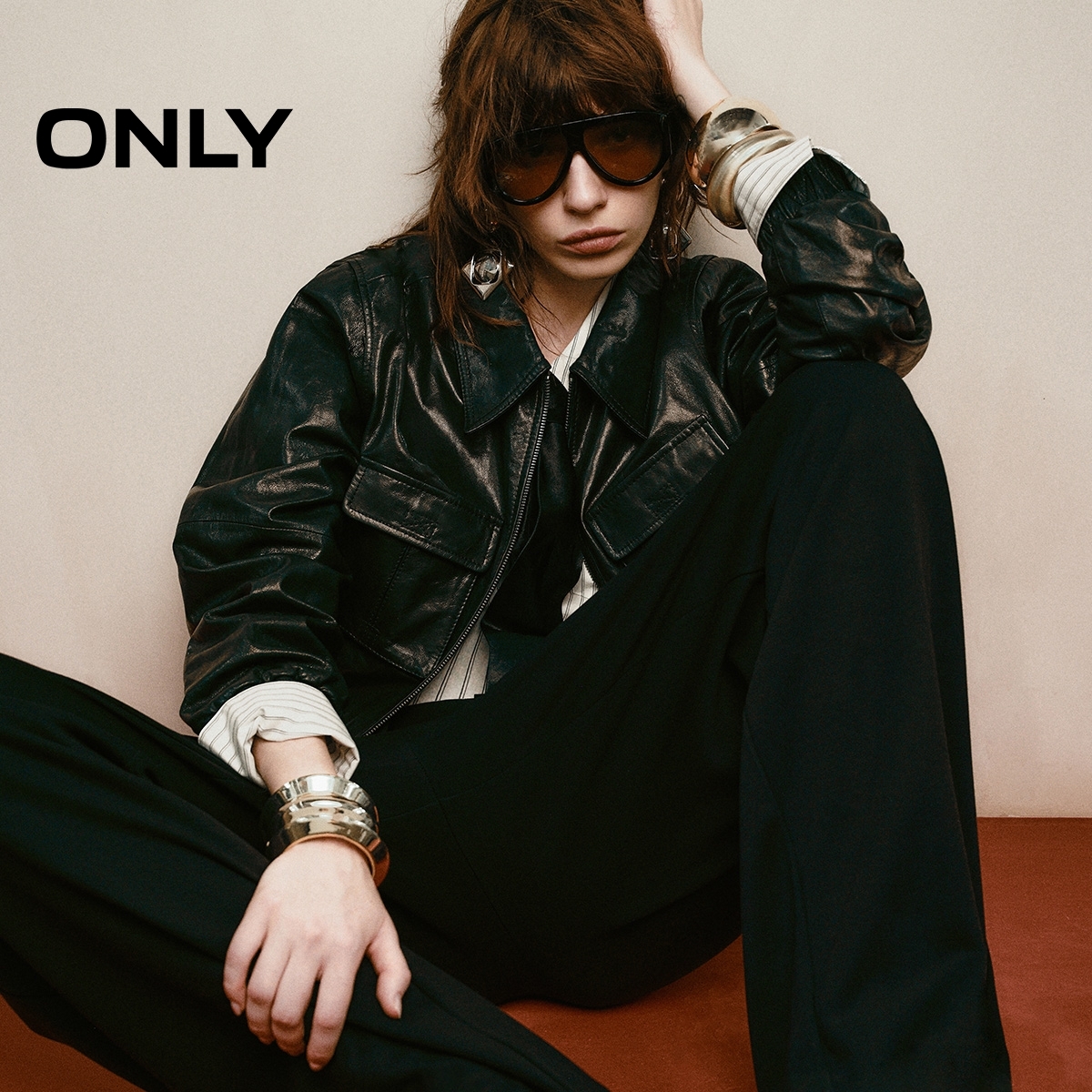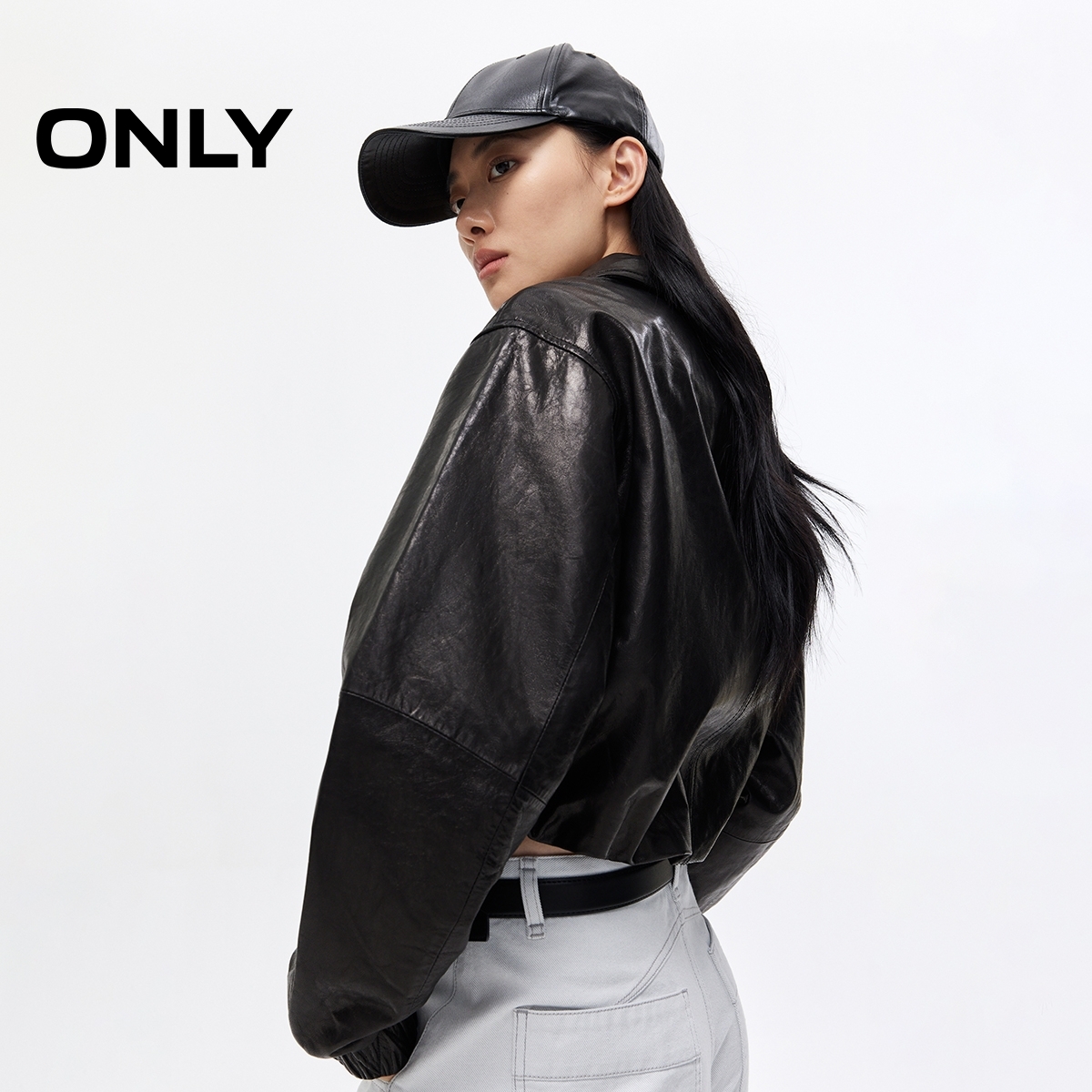 羊皮真皮皮衣外套女 帅气机车风挺括落肩长袖 ONLY2025冬季 新款