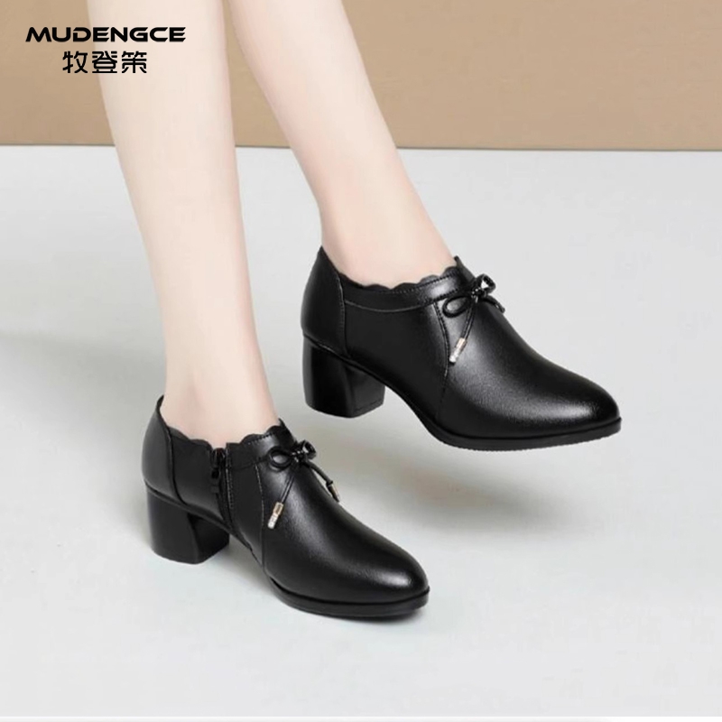 子D9U1DCA5 不累脚妈妈深口单鞋 百丽粗高跟海鸥乐福鞋 女2025新款