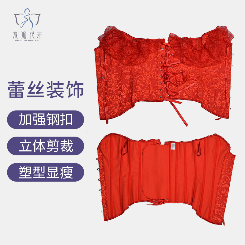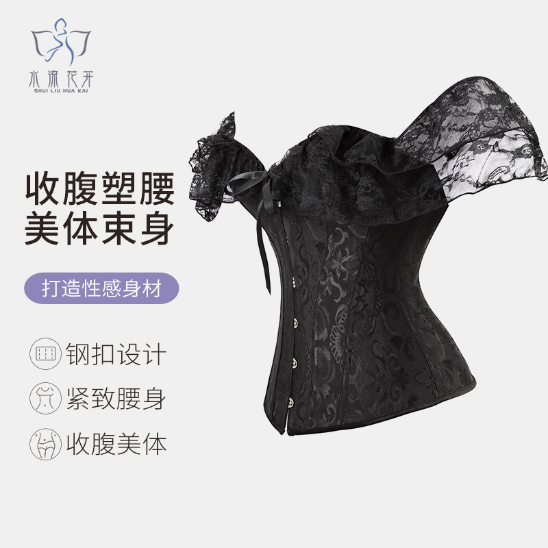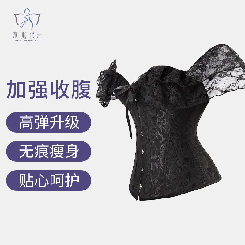 欧美束腰宫廷束身衣复古印花塑身衣收腹带紧身绑带corset腰封
