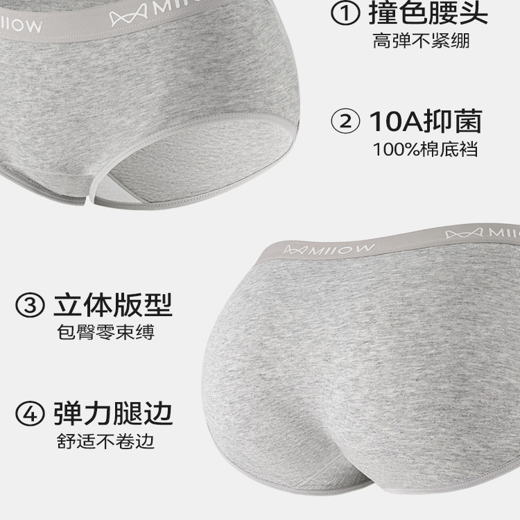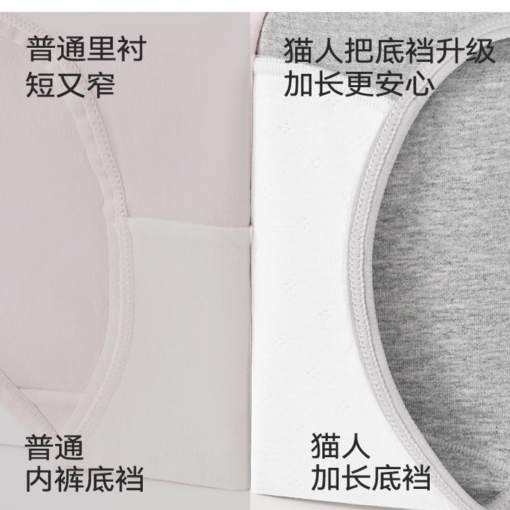 三角短裤 猫人内裤 女士纯棉10A抗菌裆加长中腰无痕透气少女生新款