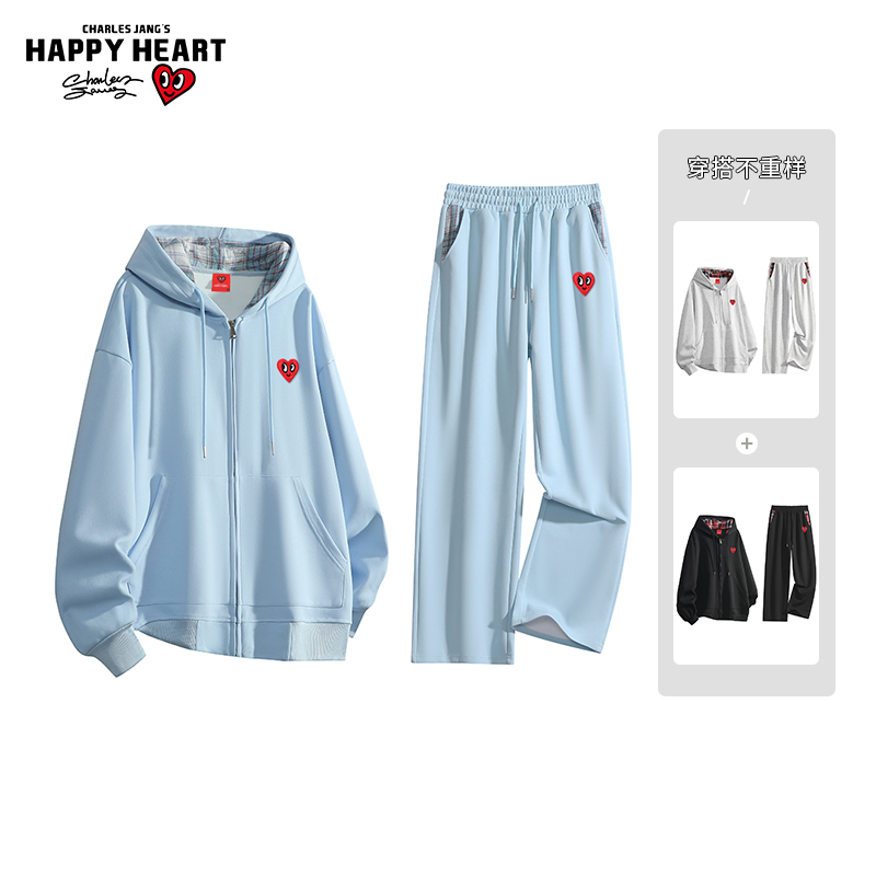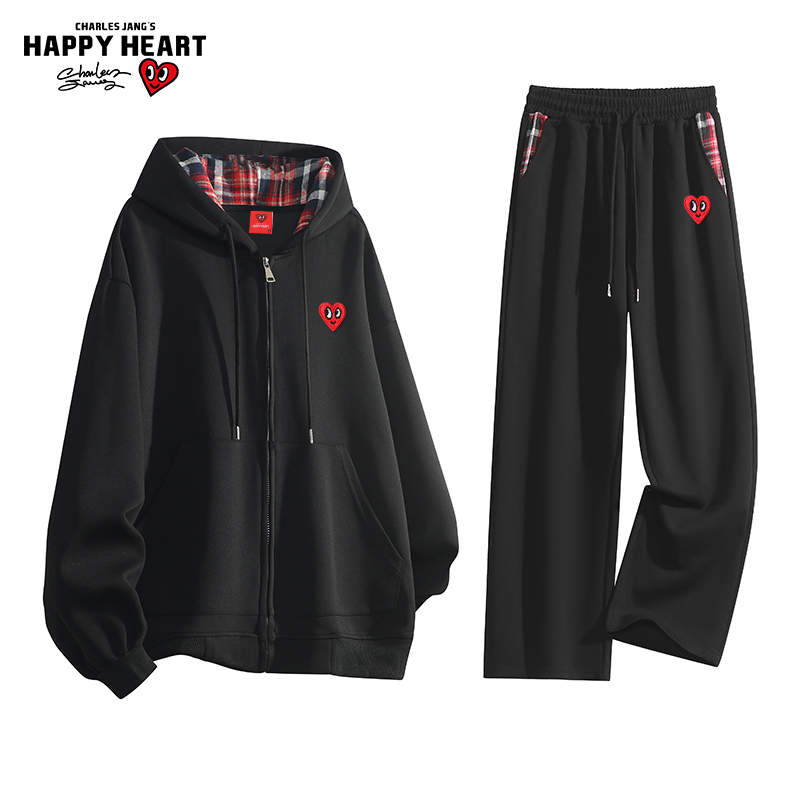 情侣休闲运动套装 撞色格子连帽卫衣男女春秋冬季 美式 查尔斯桃心