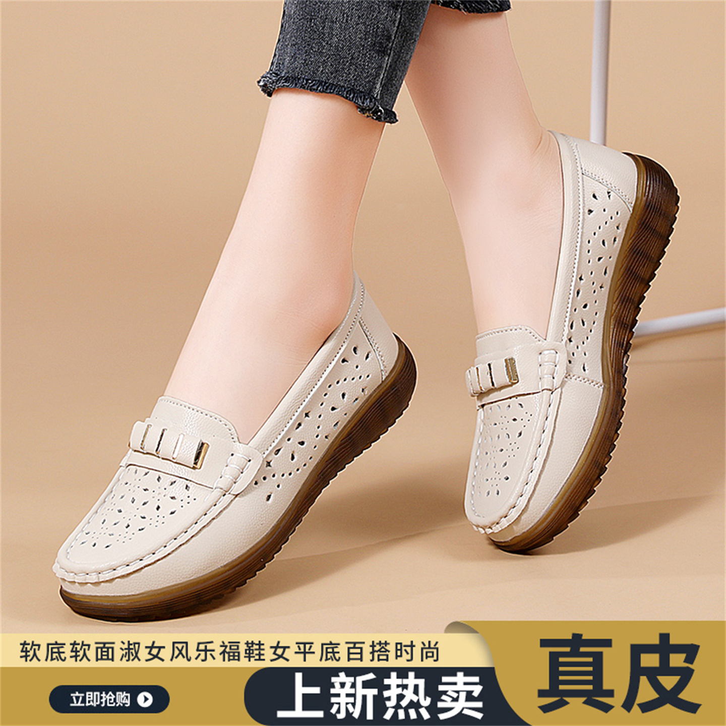 特价 舒适防滑中老年妈妈鞋 真皮软底乐福鞋 爆款 女2025新款 天猫正品