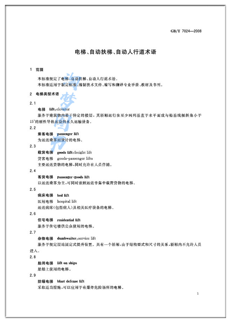 自动扶梯 7024 电梯 自动人行道术语 2008