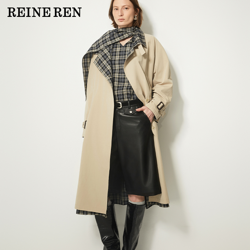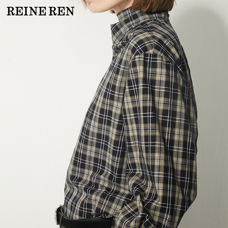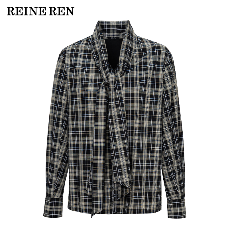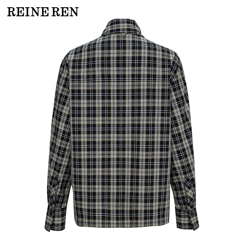 复古格纹假两件飘带廓形磨毛衬衫 REINEREN任茜设计师款 2025秋季