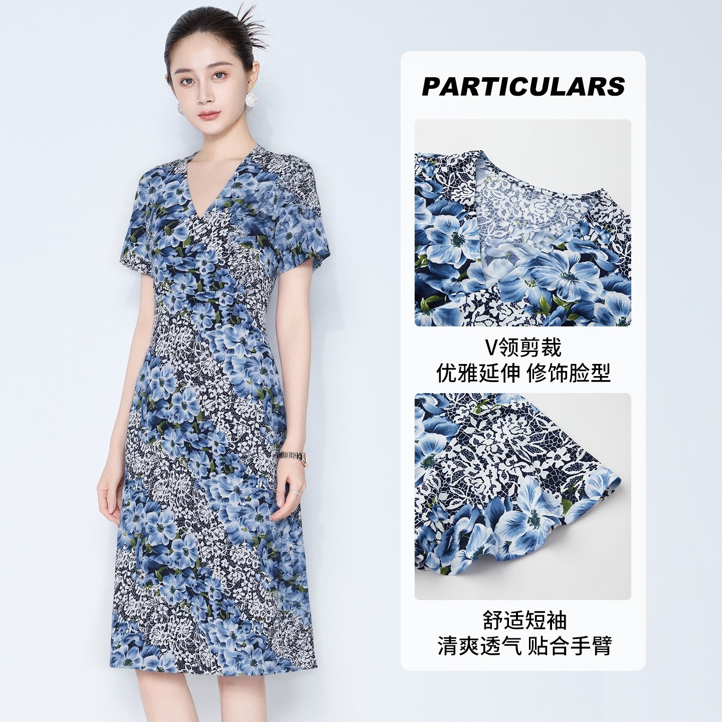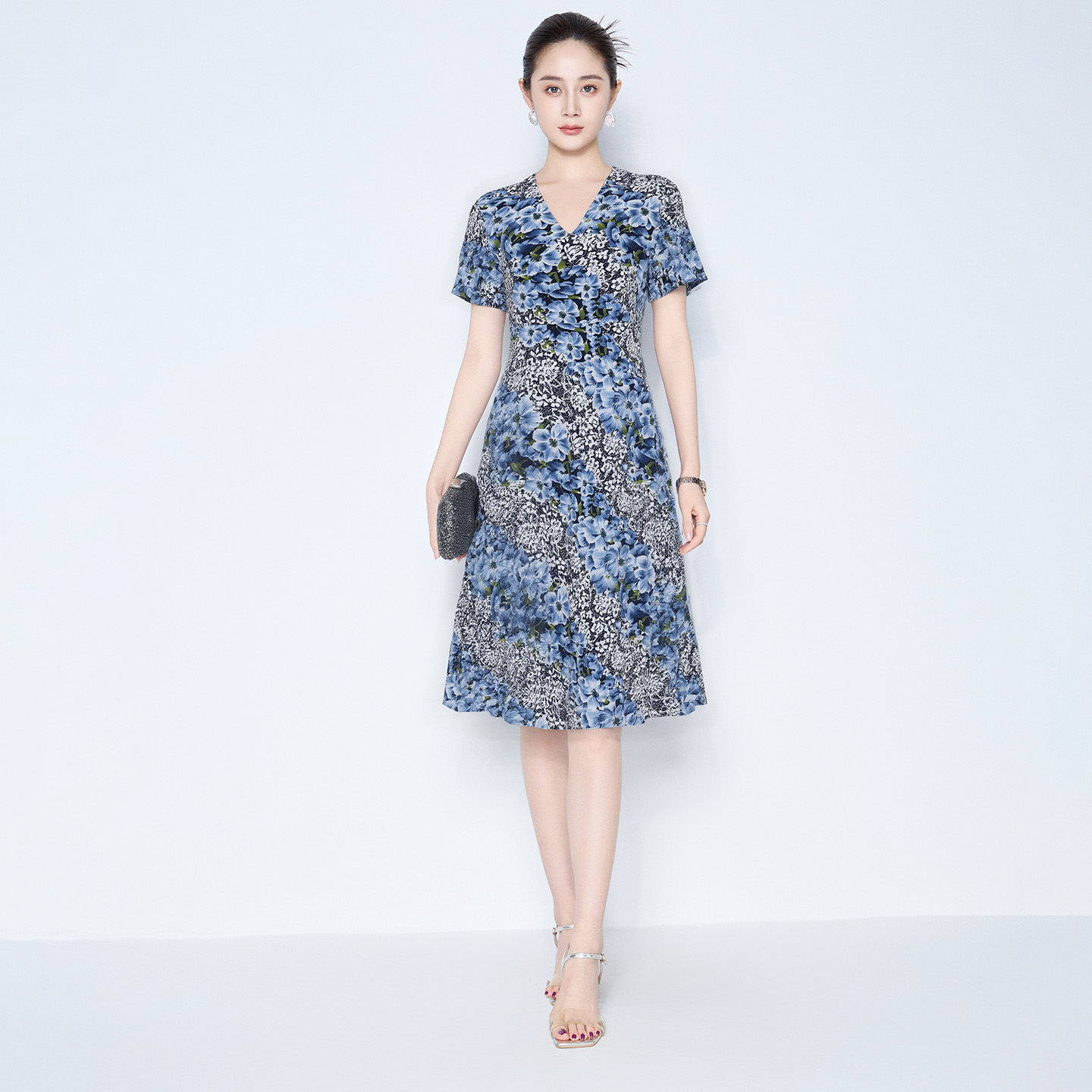 女装 气质时尚 植物印花连衣裙子V领收腰短袖 马天奴2025春夏新款