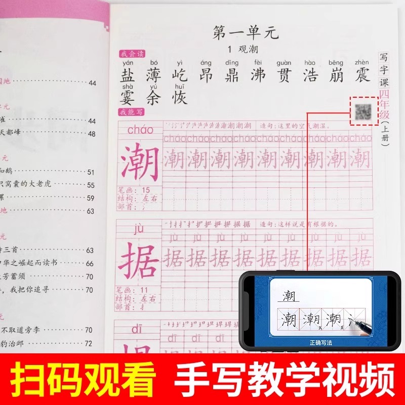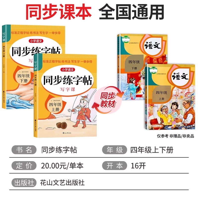 钢笔生字练习英语字帖练字下册 4年级上学期写字课课练小学生专用正版 下 小学语文练字帖每日一练 四年级上册同步字帖配套人教版