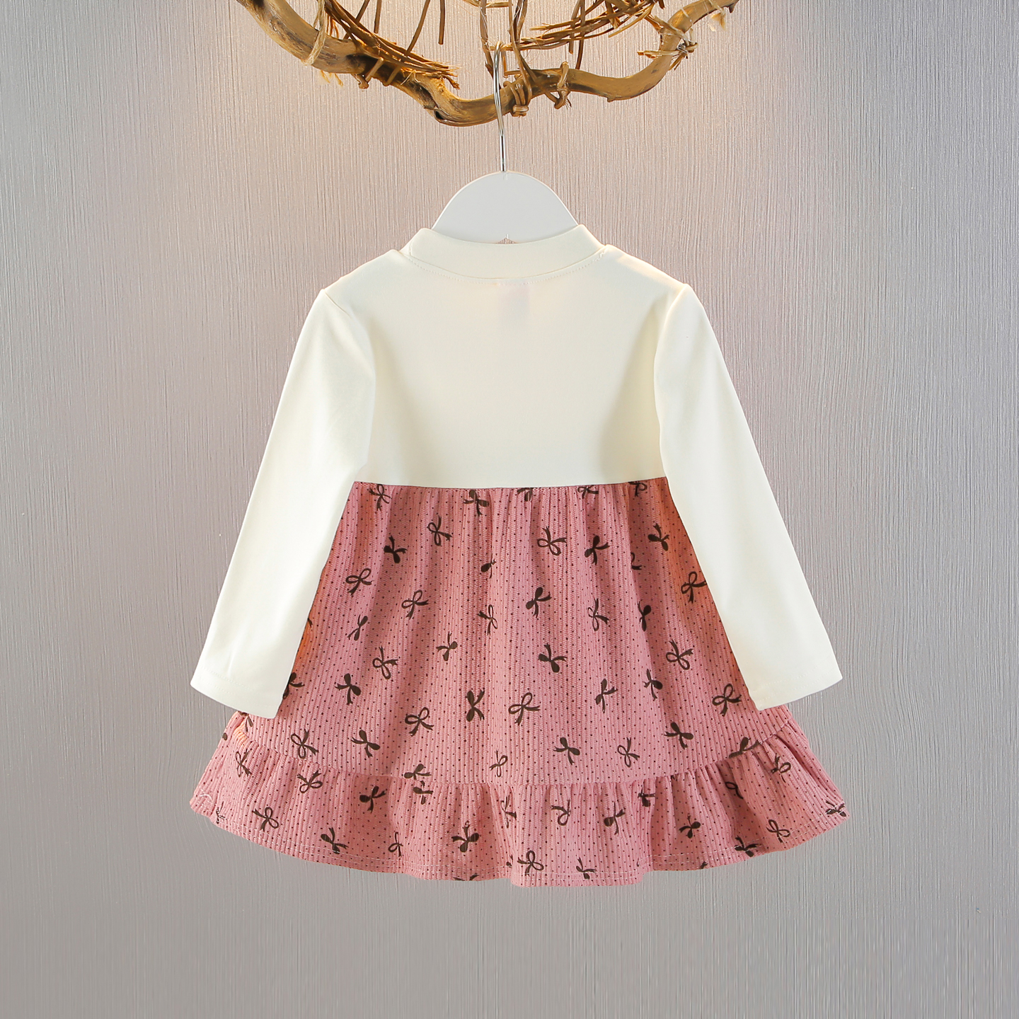 508198 小刺绣撞色拼接翻领A字长裙子女装 三福连衣裙2025新款 秋季