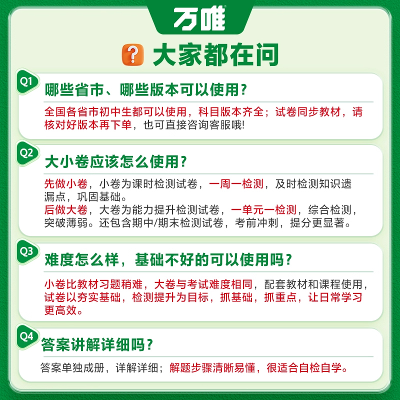 2026新版 七八九年级初中必刷题同步教材语文数学英语物理小四门测试卷子万维教育 万唯大小卷上下册同步试卷暑假预复习全套人教版