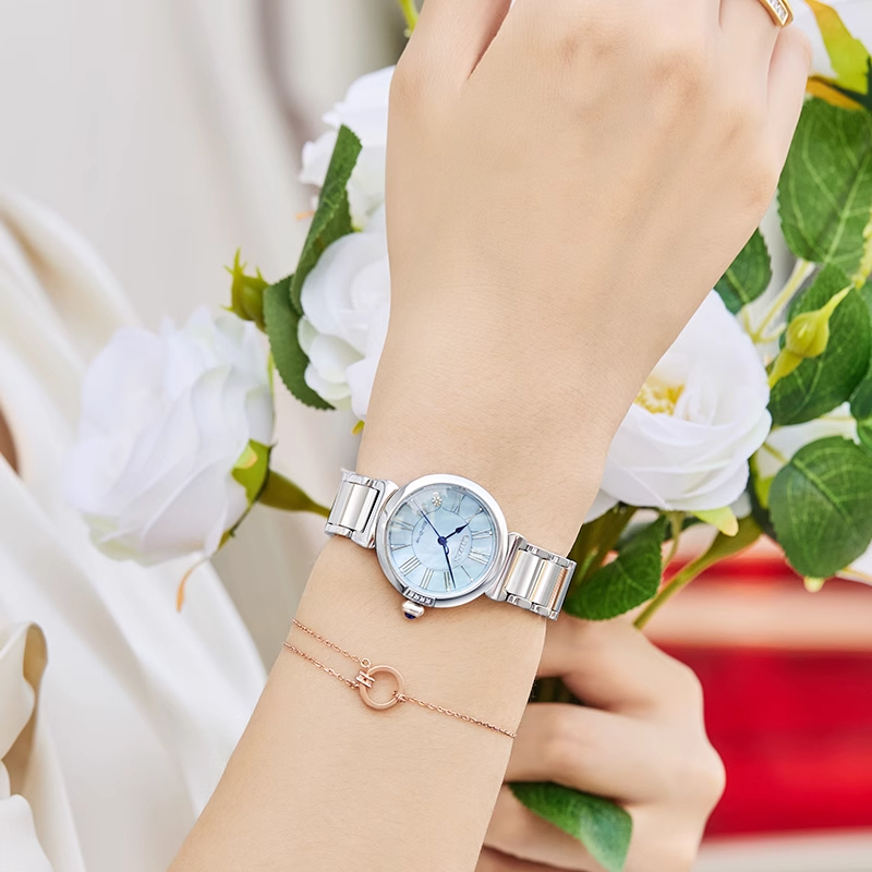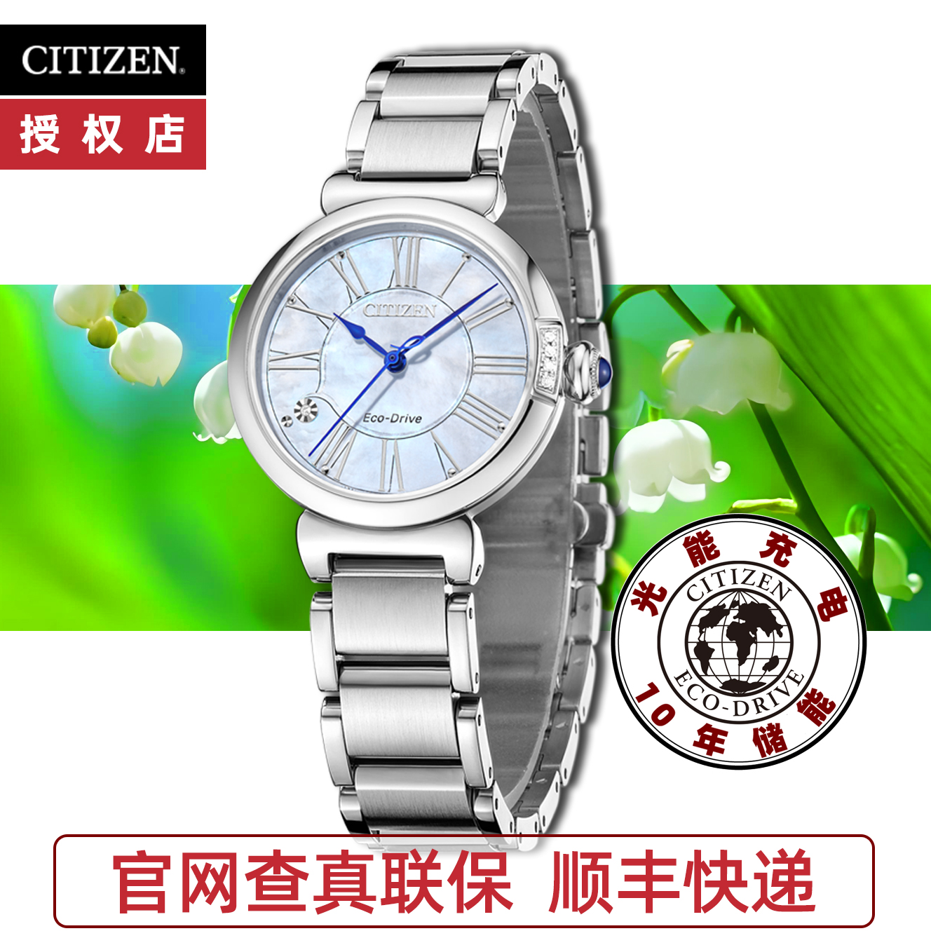 西铁城手表小铃花光动能手链钢带女表EM1060官方旗舰店