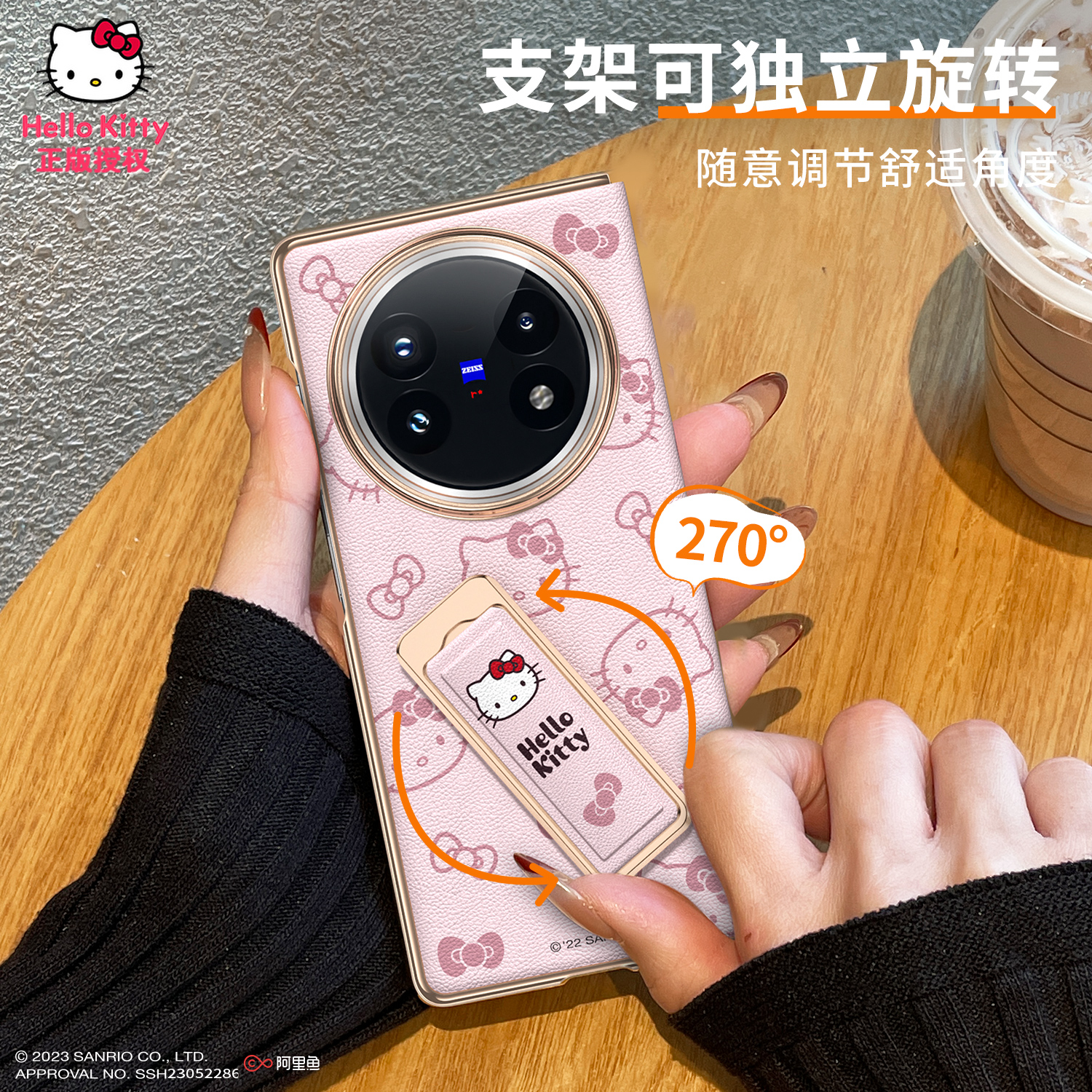 fold5磁吸中轴全包外壳kitty猫 HelloKitty适用vivoxfold5手机壳vivo xfold5腕带支架保护套新超薄防摔vivo