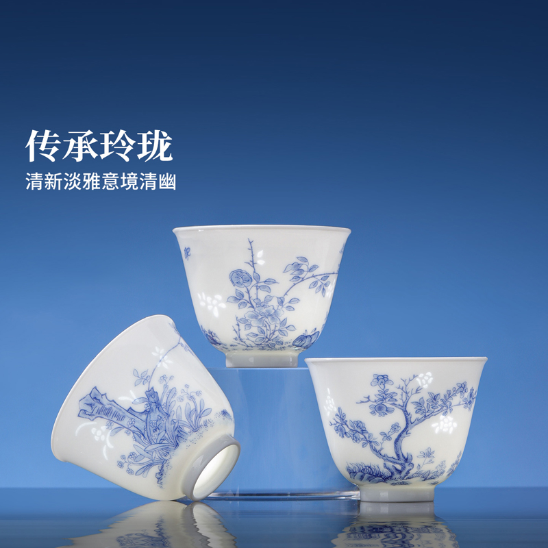 可悬停旋转盖碗茶杯茶具单个高档羊脂玉三才带盖子茶碗泡茶手抓壶