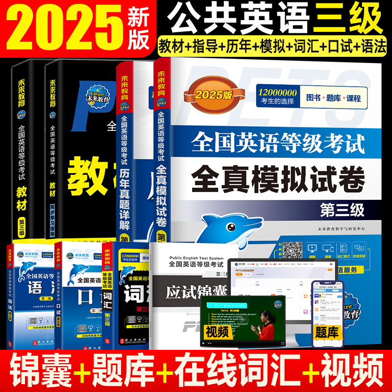 未来教育2025年公共英语三级考试教材历年真题模拟试卷全套PETS3全国公共英语等级考试公三pet3英语语法同步学习指导词汇听力24qh