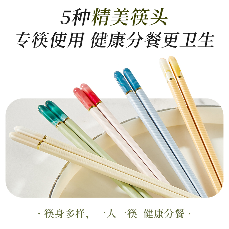 景德镇正品 家用高档象牙白防霉防滑小家庭抗菌公筷 陶瓷筷子中式