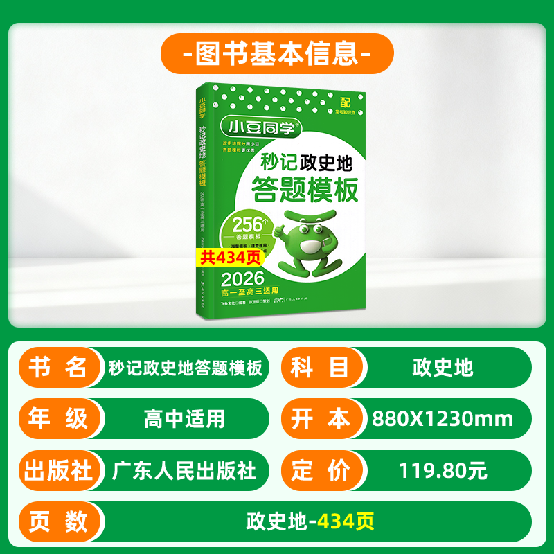 2026小豆同学高中政史地答题模板秒记背高一二三政治历史地理物理化学语文数学英语生物总复习高中教辅知识点背诵要点速用解题技巧