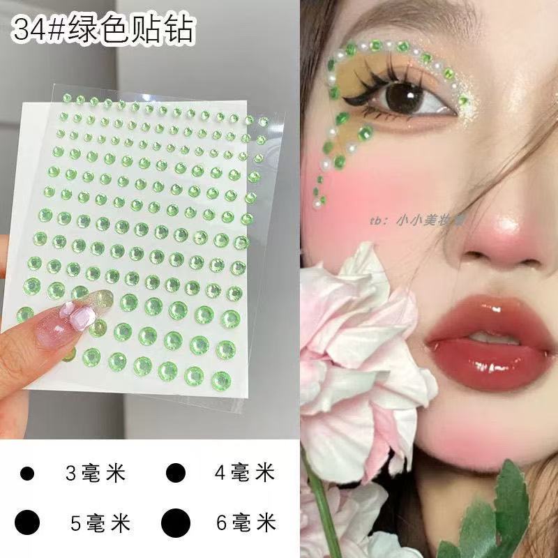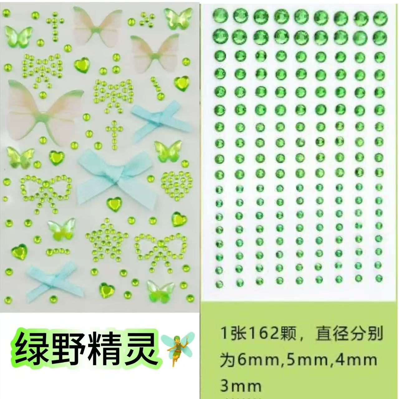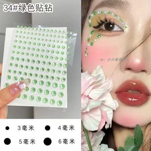 绿色蝴蝶结贴纸脸上饰品演唱会应援妆面贴精灵妆脸部装 饰水钻亮钻