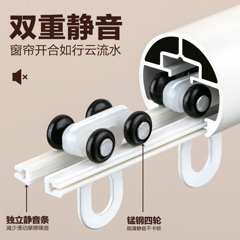 铝合金加厚罗马杆窗帘轨道静音侧装 双杆窗帘轨道免加厚滑道滑