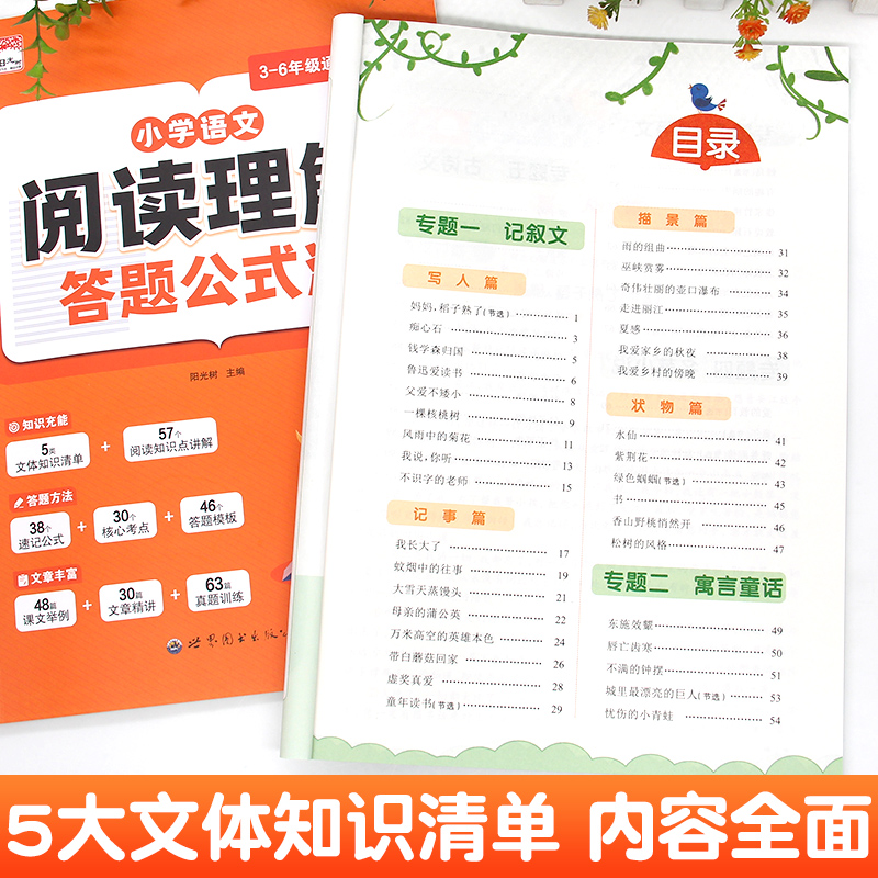 小学语文阅读理解答题公式 法真题训练一年级二年级三四五六年级语文阅读组合训练五合一阅读训练一百篇100篇课外阅读训练同步练习