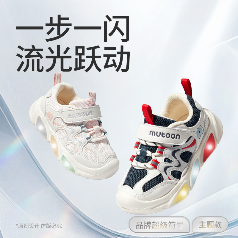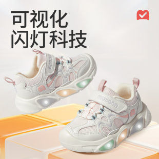 轻便减震女童透气网面跑步鞋 2025秋新款 男童闪灯鞋 牧童儿童运动鞋