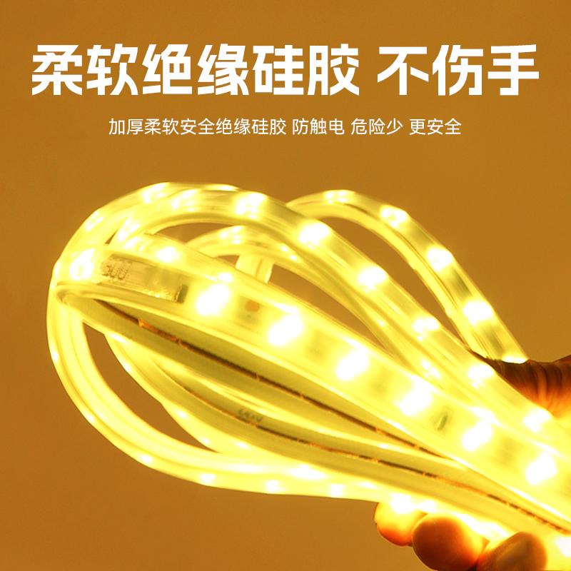 led灯带防水220v120珠透镜外墙工程专用室外超亮暖光高压彩灯条带