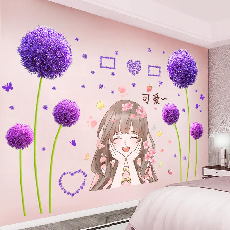 温馨卧室墙纸自粘女孩房间布置少女心床头翻新贴纸壁纸花卉墙贴画