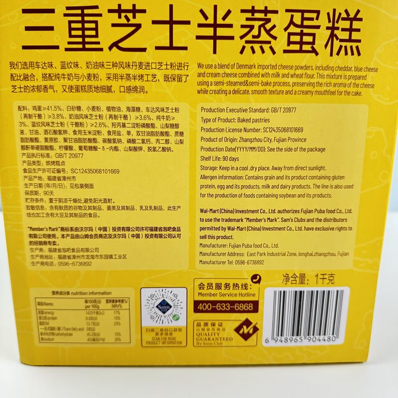 山姆代购 半蒸芝士蛋糕面包糕点休闲早餐下午茶三重芝士半蒸蛋糕