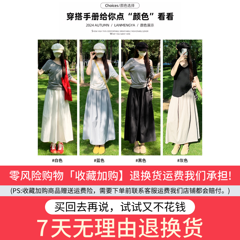 工装 a字中长款 半身裙 新款 白色高腰抗皱速干伞裙女春秋2025年夏季