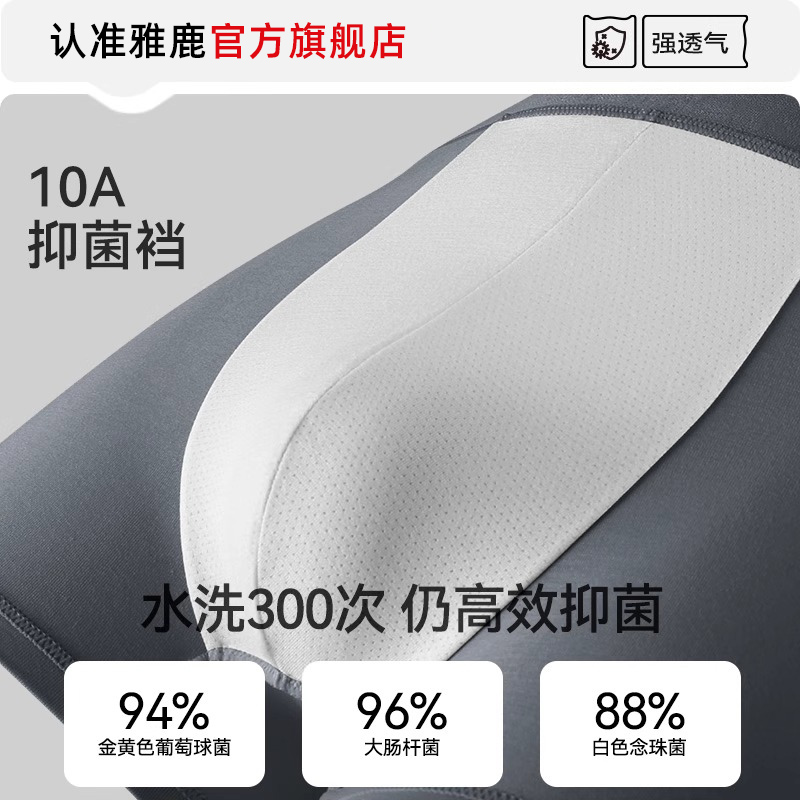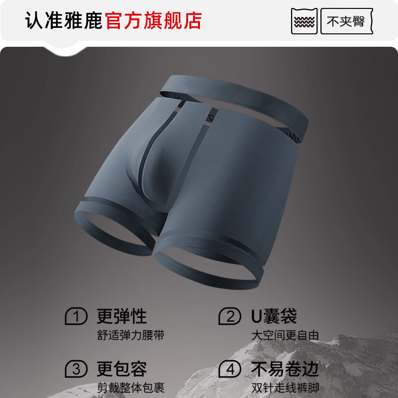 内裤 男生平角短裤 男款 2025新款 抗菌冰丝 纯棉全棉四角底裤 雅鹿男士