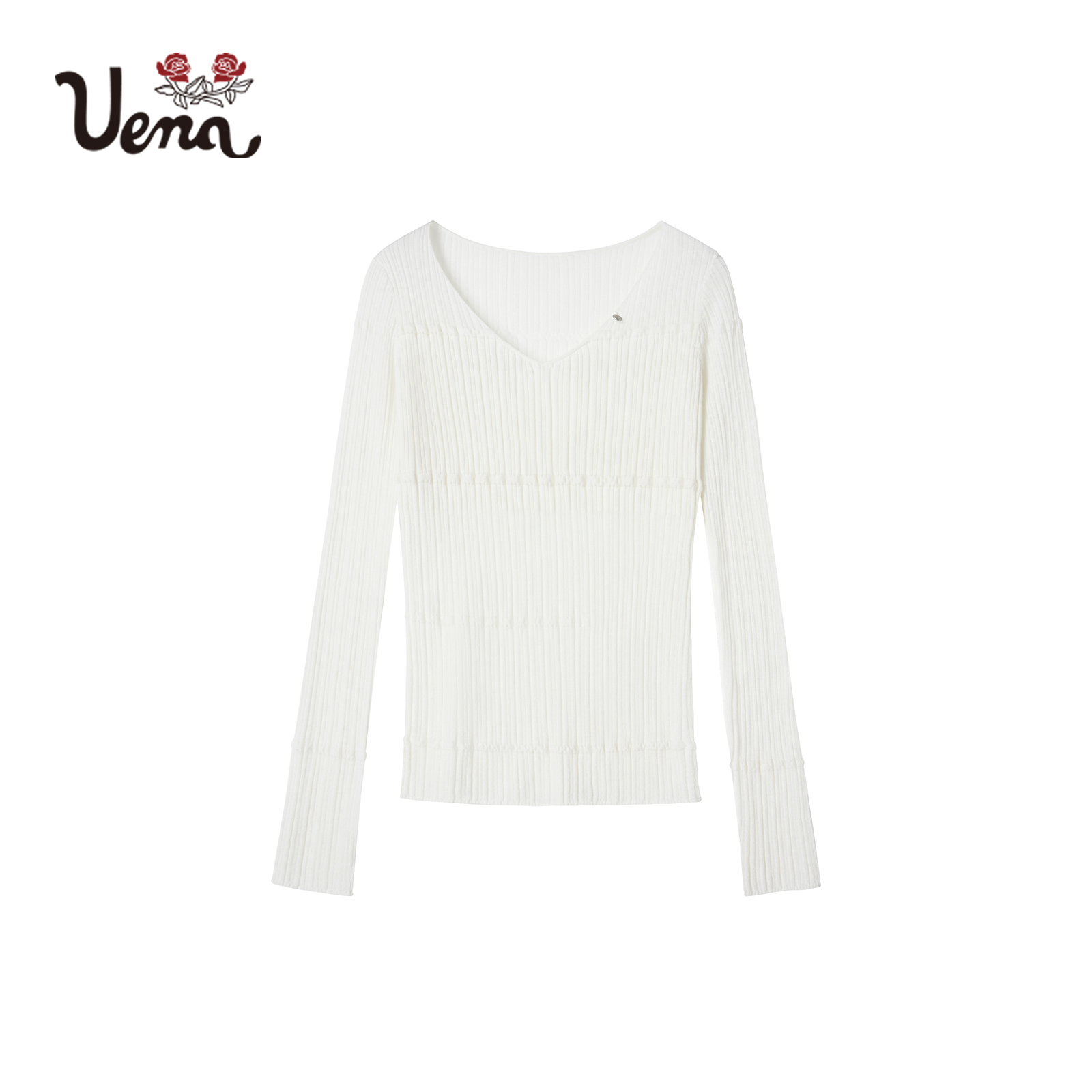 显瘦长袖 修身 Uena白色肌理感V领毛针织衫 内搭打底衫 咫尺柔光