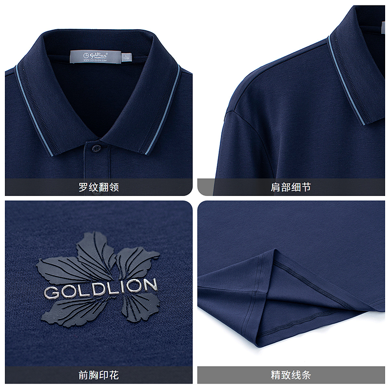 T恤纯棉商务时尚 长袖 紫荆花印花翻领休闲上衣 男士 金利来秋冬新款