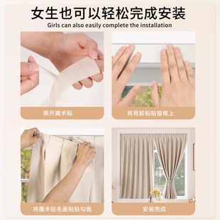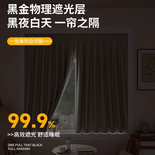 2025新款 卧室窗帘遮光布加厚免打孔飘窗阳台黑金窗户防晒隔热遮阳