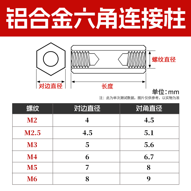 铝合金双通六角接柱隔离柱模型支撑柱航拍机顶柱六角铝棒连接螺纹