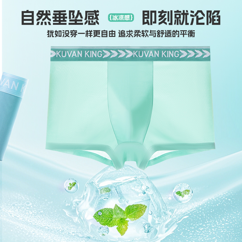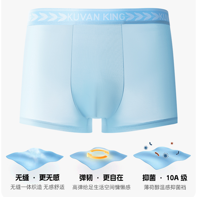 凉感四角内裤 薄荷醇裆无痕透气青少年平角裤 内裤 抗菌冰丝男生男士