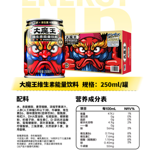 大魔王牛磺酸维生素运动功能饮料提神250ml 气开车人参 12罐健身元