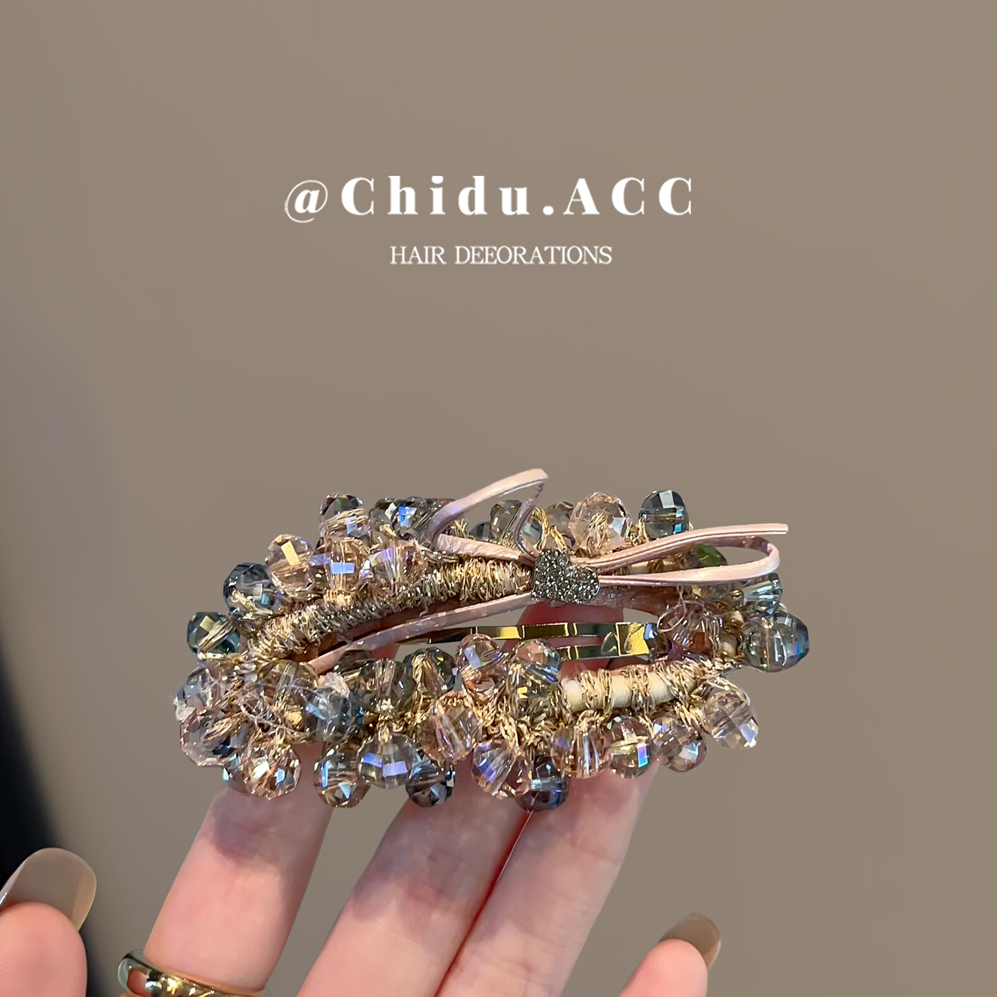 韩国高级感香槟色重工蝴蝶结边夹女高级感时尚 侧边bb夹气质新款