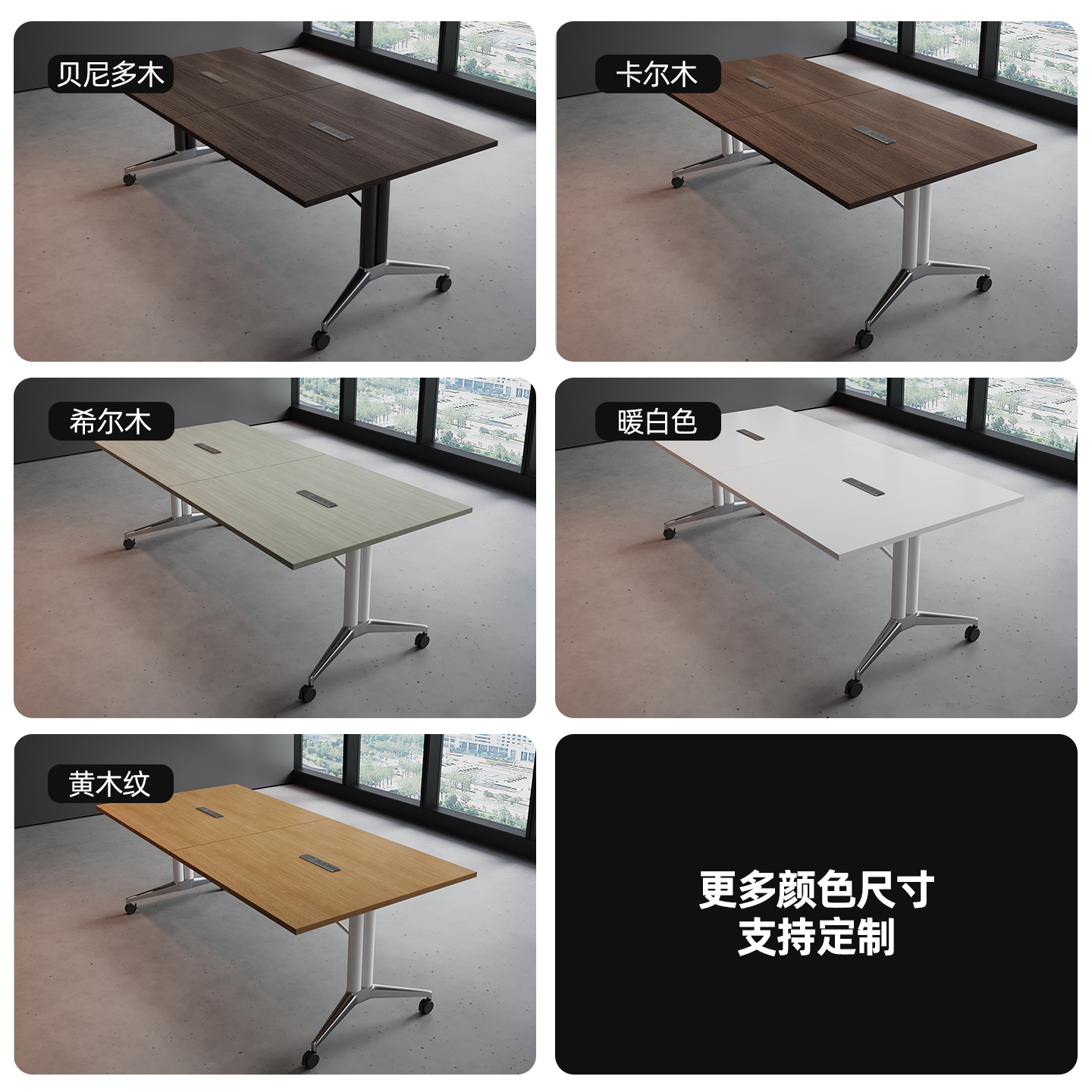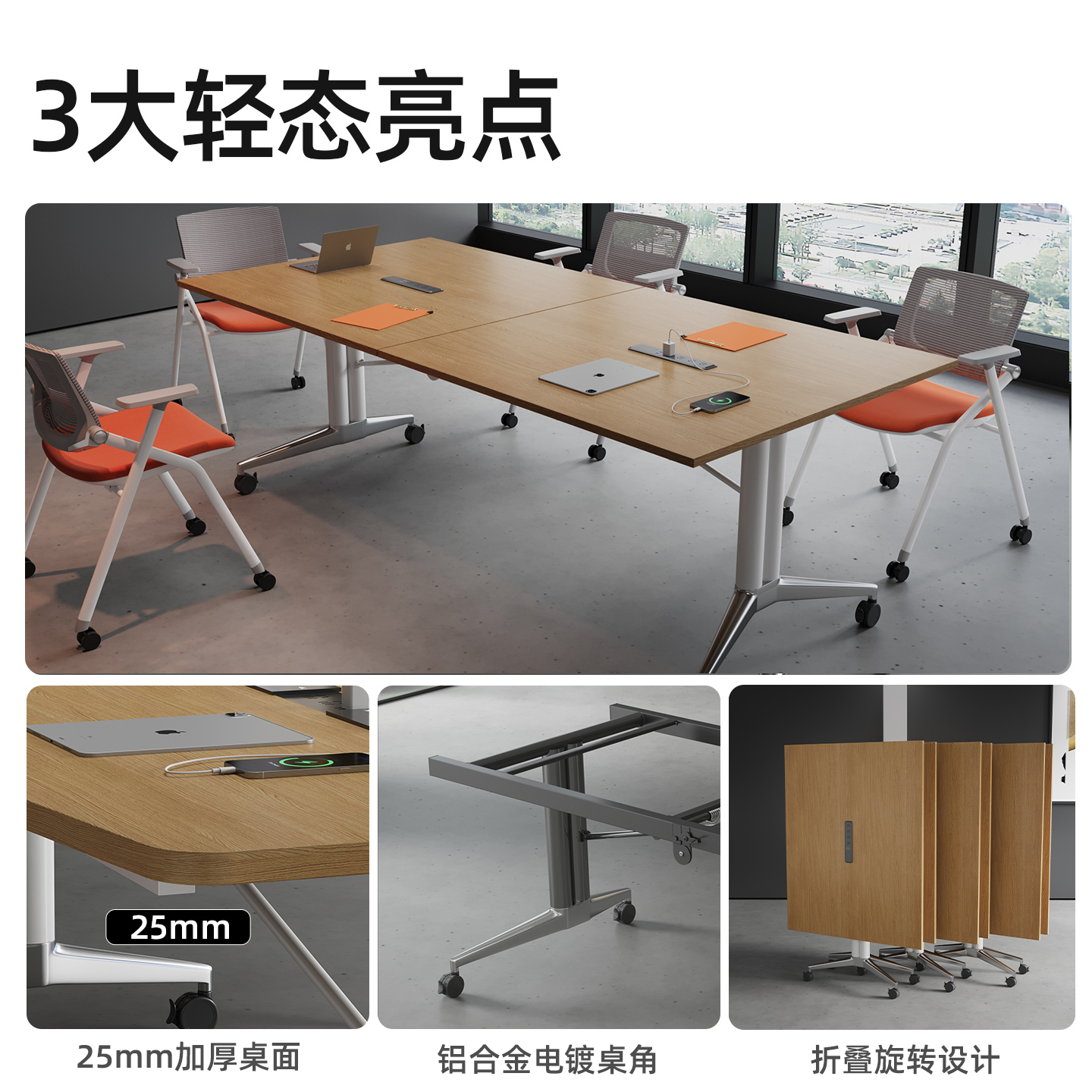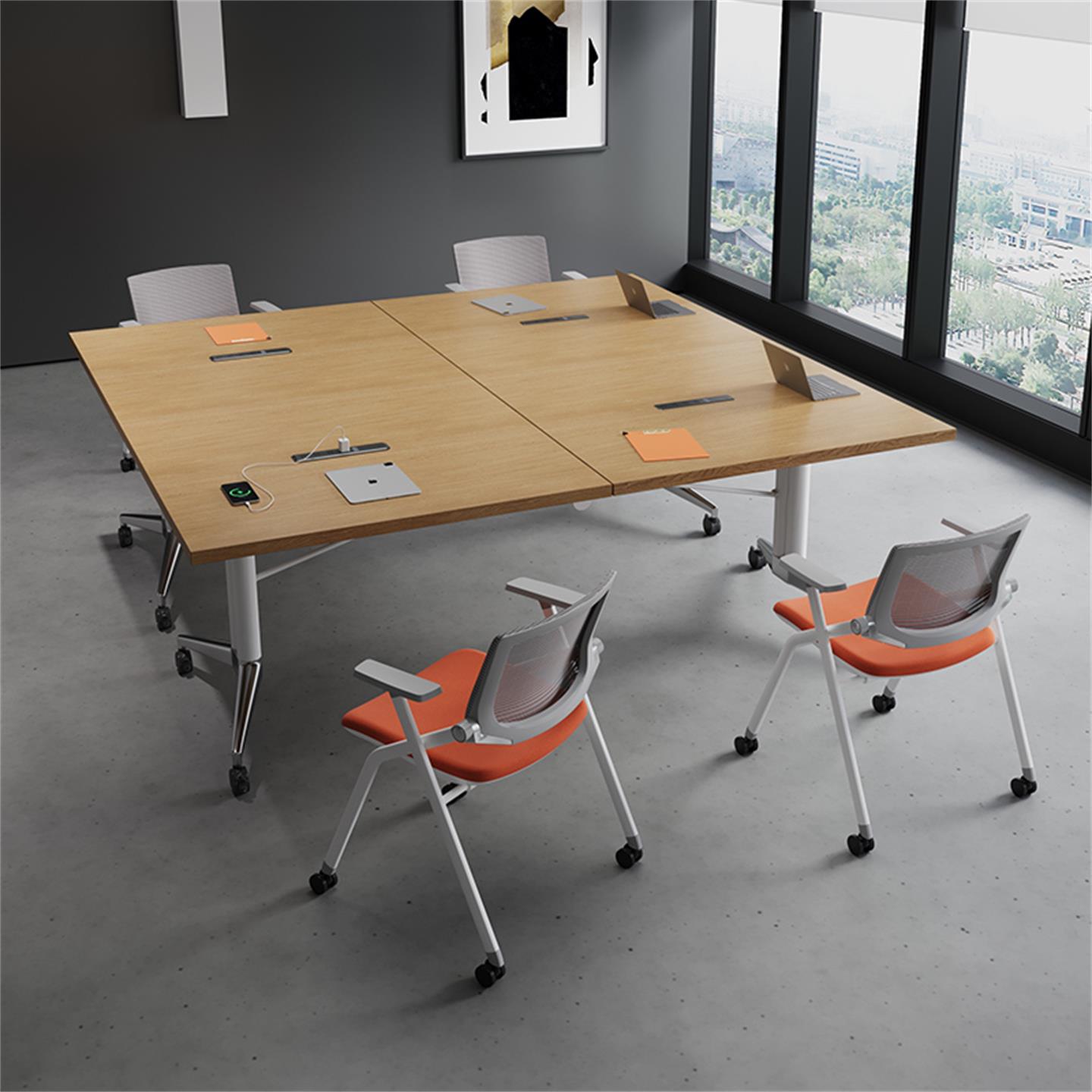 可移动折叠会议桌长条桌培训桌伸缩拼接办公桌子带轮子超大可拆卸