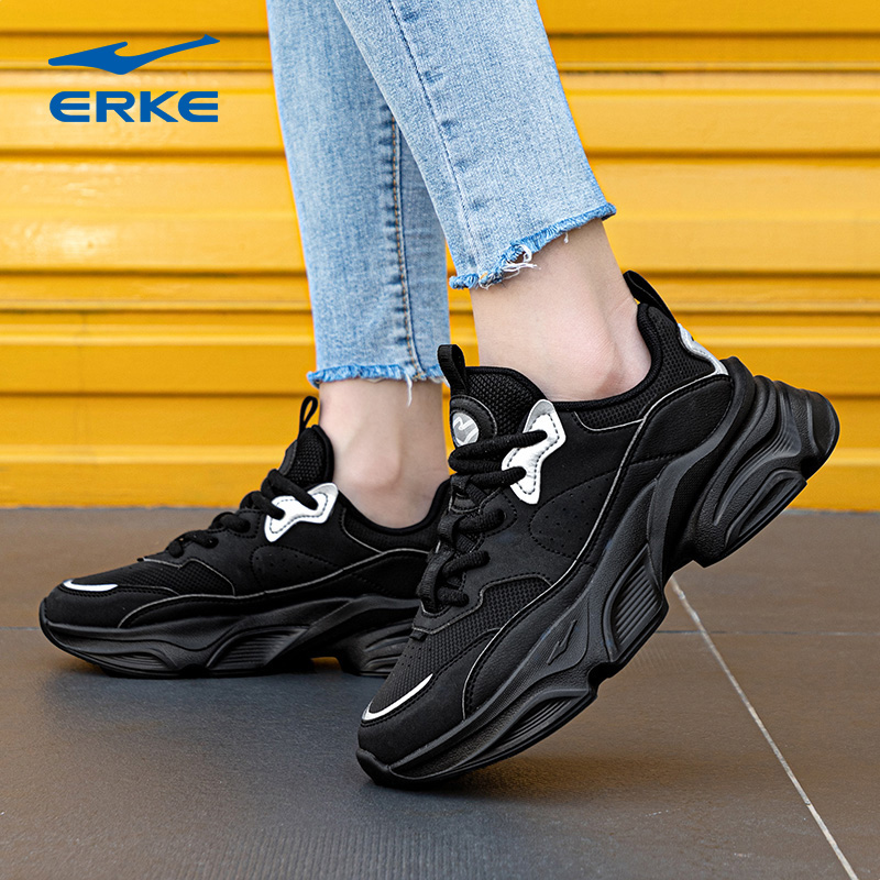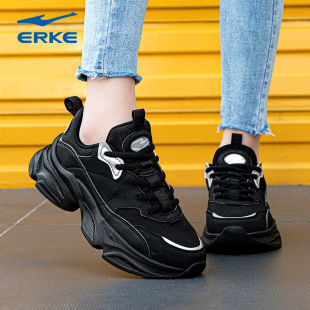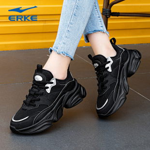女鞋 老爹鞋 秋季 复古跑鞋 革网面透气厚底轻便运动鞋 特步星火休闲鞋