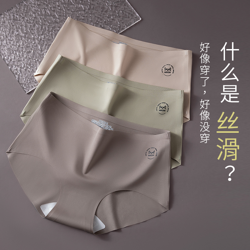 头 超薄冰丝三角短裤 猫人无痕内裤 女裸感抑菌裆不夹臀透气隐形夏季