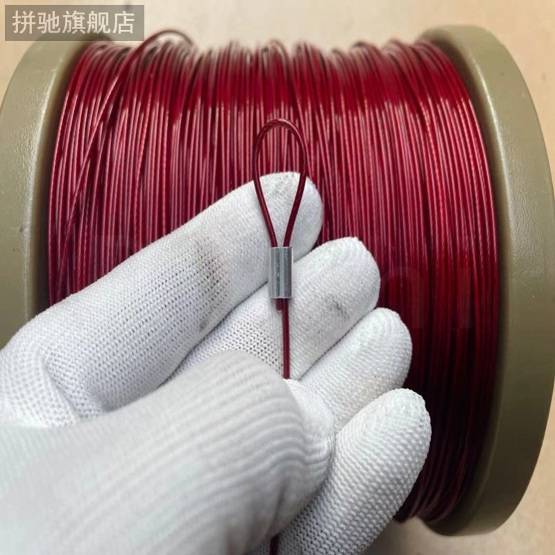 软钢丝绳红色304不锈钢包塑细软钢丝线吊牌子灯饰挂画钓鱼线拉绳
