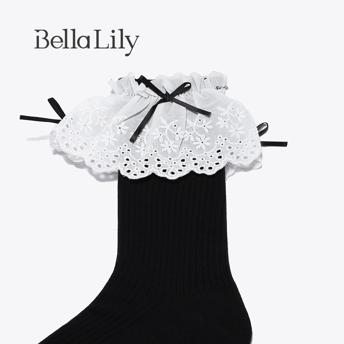 有棵树袜子纯棉女士秋冬7A抗菌透气中筒袜白色长筒袜 复古花纱