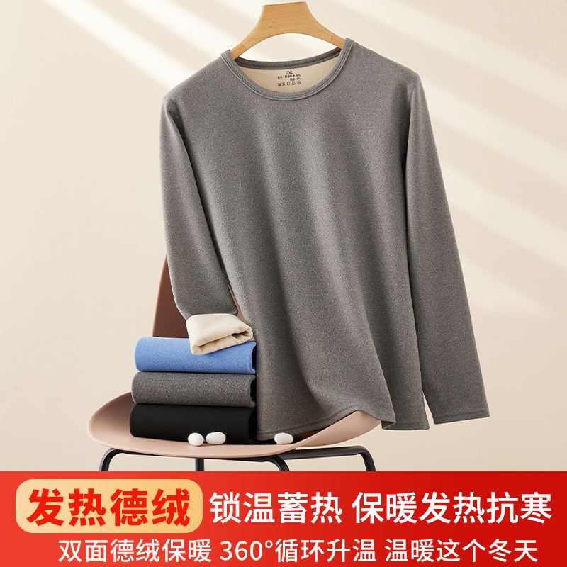 加绒加厚羊绒蚕丝发热秋衣秋裤 秋冬季 两件套 男士 德绒保暖内衣套装