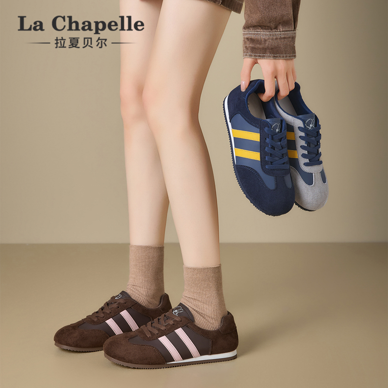 女2025新款 子运动休闲板鞋 秋季 百搭阿甘鞋 爆款 拉夏贝尔黄色德训鞋