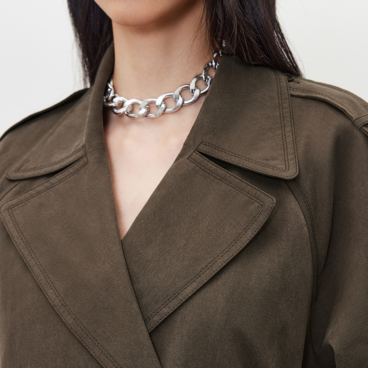 敦煌系列LILY2025秋新款 复古雅丹风长绒棉通勤卡其色风衣外套 女装