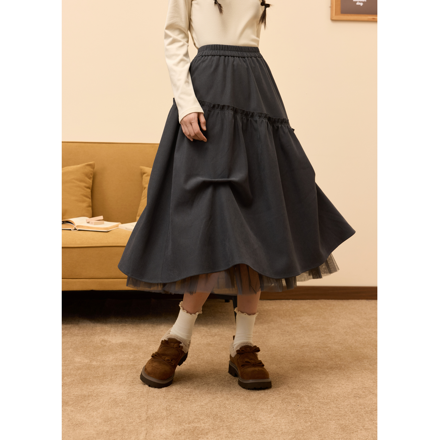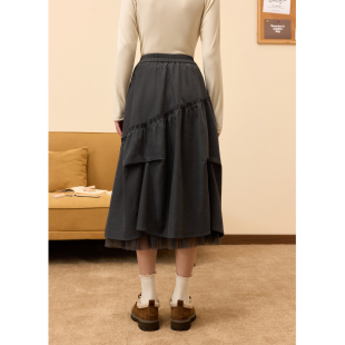 毛边拼接鱼尾灰色半身裙 25秋冬新品 Desigual大西瓜 博主同款
