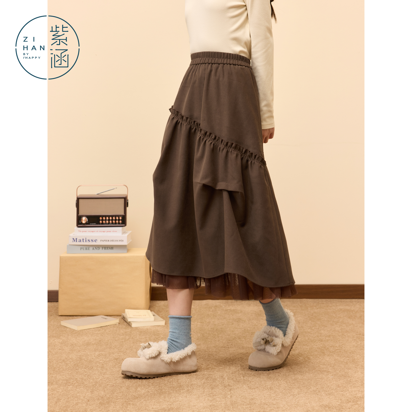阔色咖啡色蛋糕裙半裙2025秋冬季 女a字裙半身裙短裙子卡其色 新款