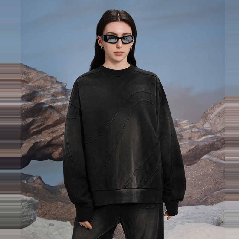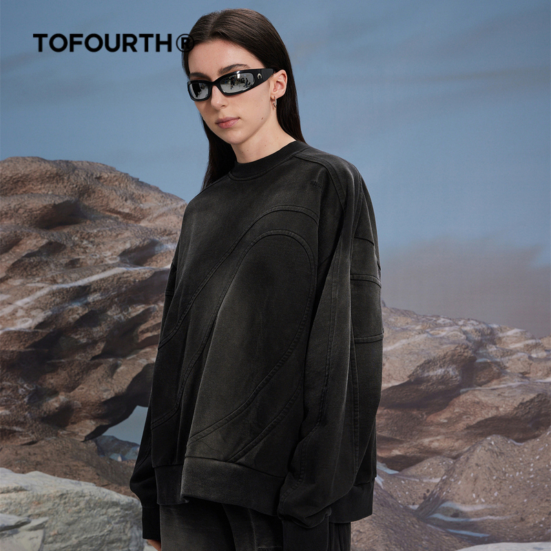 晕染做旧车线设计套头休闲卫衣男女同款 商场同款 卫衣 TOFOURTH